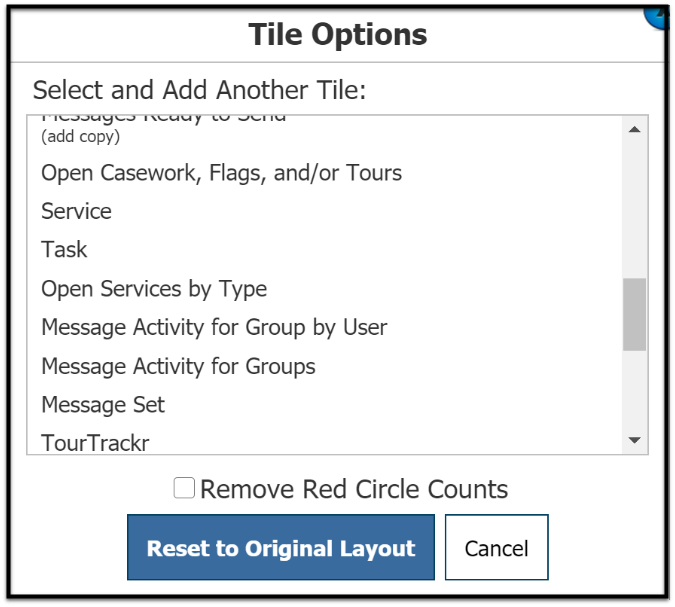 3. The Tile Options window opens. Select the title of the tile.