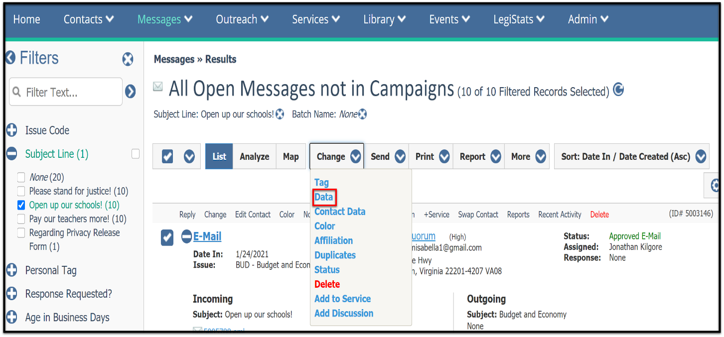 First, manage bill-related messages as this will allow you to also manage all the campaigns associated with a bill. Thus, you are reducing the number of campaign messages (which tend to have the highest volume of message records in IQ) at the same time.